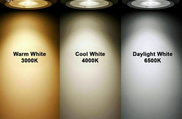 هو درجة لون الإضاءة، من الدافئ إلى الأبيض البارد كما في الصورة أدناه الأفضل عادة يكون بين 3000 إلى 3500 كلفن لإضاءة مريحة ومتوازنة تنبيه تختلف الدرجات بين الشركات،