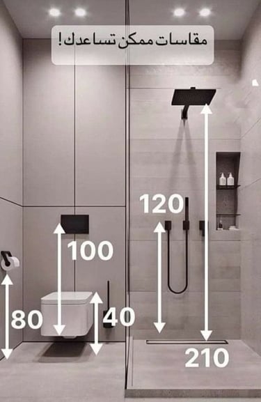 *أقل عرض ل دورة مياه ( ٩٠ - ١٠٠ ) سم